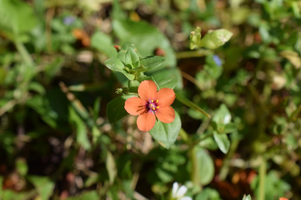 « Te fais pas de mouron » disait-on autrefois… Toujours dans la même pelouse, voici le mouron rouge, Anagallis arvensis. Pour une raison qui m’échappe, il est dans la même famille que la primevère, les Primulaceae. J’ai toujours été fascinée par la couleur rare de cette petite fleur.
