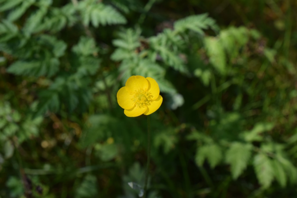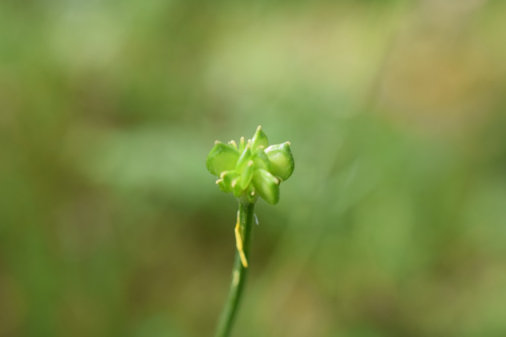 Oooh, un bouton d’or (lol)! Oui mais houlala attention il y a bouton d’or et bouton d’or. Ici on est sur Ranunculus bulbosus parce que: le pédicelle (axe qui porte la fleur) est sillonné, les feuilles basales sont palmées, et surtout les sépales sont rabattus contre le pédicelle. Qu’on se le dise. On remarque qu’il y a tout plein d’étamines, et un fruit avec des carpelles distincts, signes à quoi l’on reconnait la famille des Ranunculaceae.
