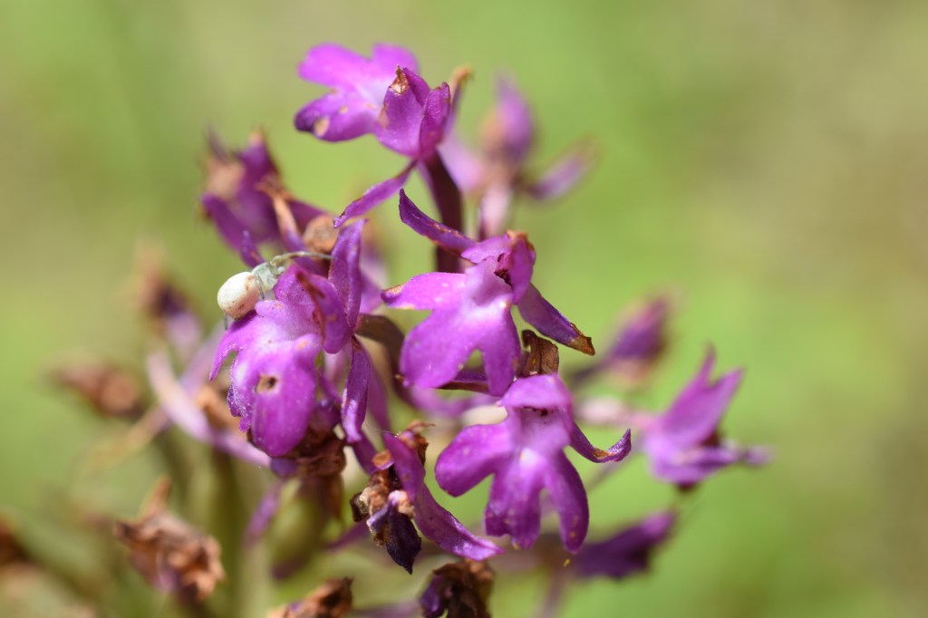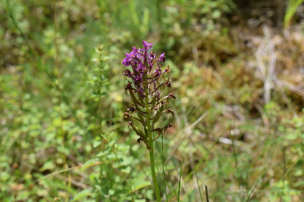 Gymnadenia conopsea ORCHIDACEAE. L’orchis moucheron est parait-il appelé ainsi à cause des deux pétales latéraux étalés comme les ailes d’une mouche. Celui-ci est en fin de floraison d’où son aspect fatigué. C’est la toute fin de la saison des orchidées.