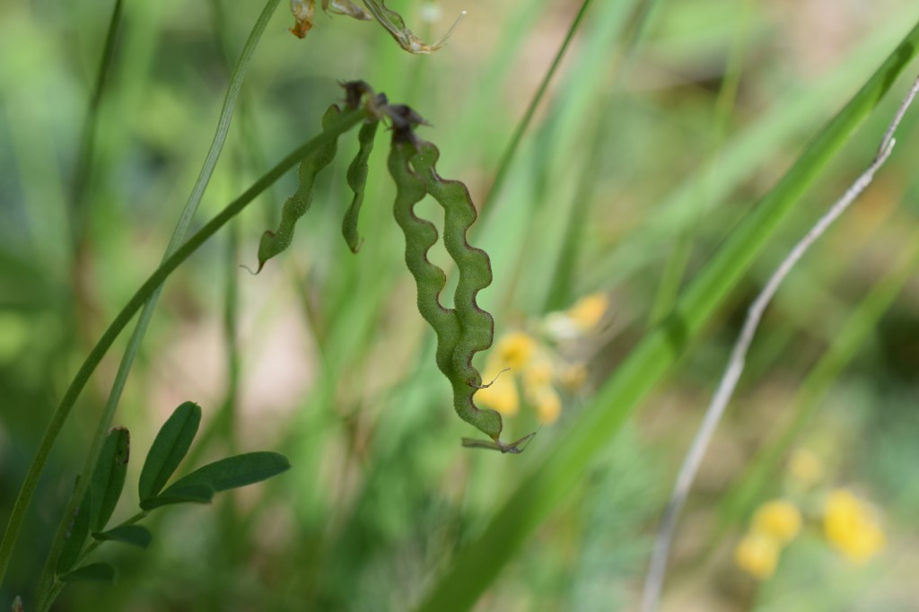 Hippocrepis comosa, FABACEAE. Cette petite fabacée (alias légumineuse alias papilionacée) se distingue par ses fruits, des gousses articulées très esthétiques.