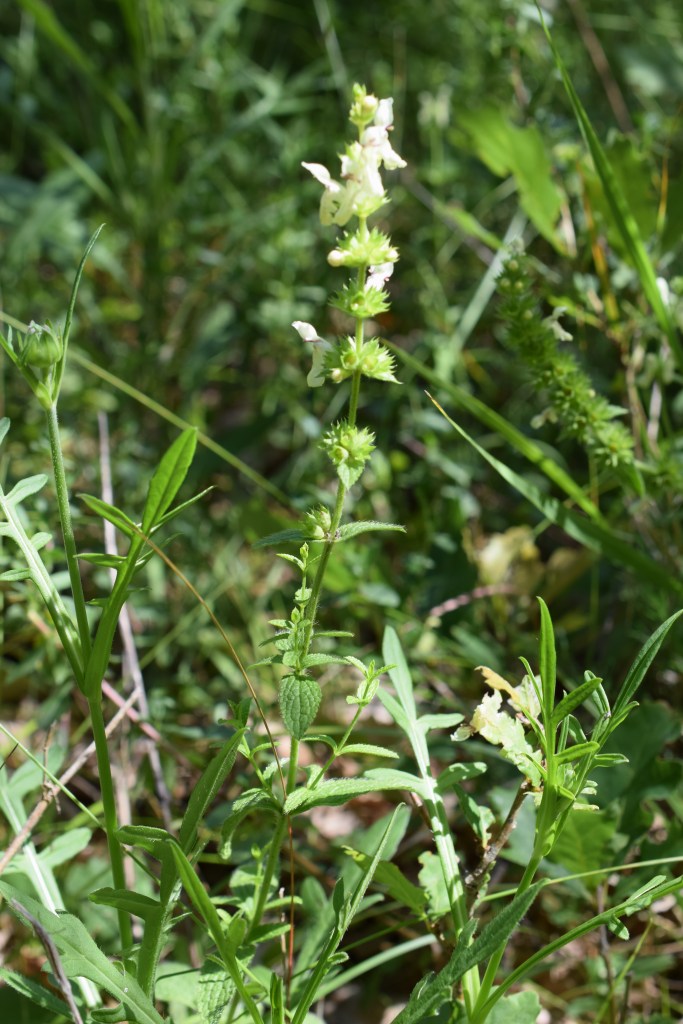 Stachys recta, LAMIACEAE. L’épiaire droite aime les lieux secs et ensoleillés. Les épiaires se reconnaissent (une fois qu’on sait arriver aux lamiacées) à leur calice aux dents épineuses et à leur corolle à deux lèvres distinctes très écartées l’une de l’autre, la lèvre supérieure n’étant pas en forme de casque comme chez les lamiers…