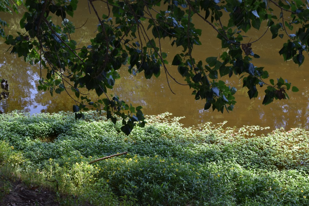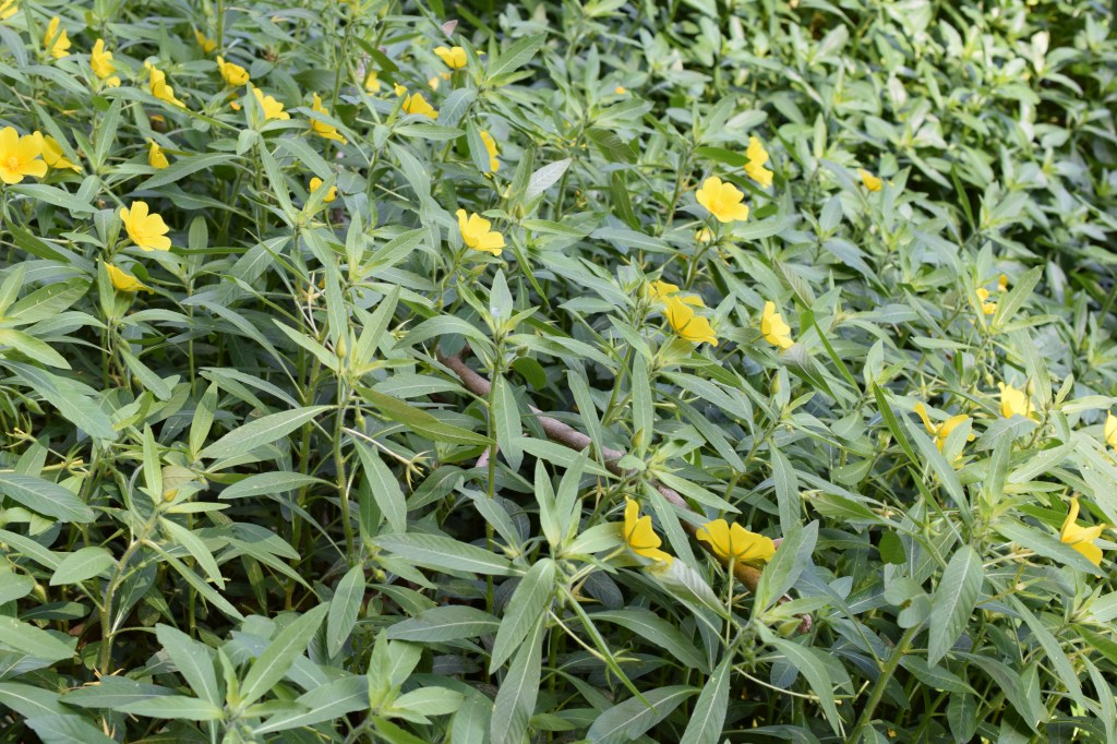 Encore une belle plante à fleurs jaunes, malheureusement invasive, Ludwigia grandiflora, Onagraceae. Elle se distingue par la présence de rejets stériles (mais vigoureux et envahissants) dont les feuilles diffèrent de celles des tiges portant les fleurs, celles-ci d’un beau jaune également.
