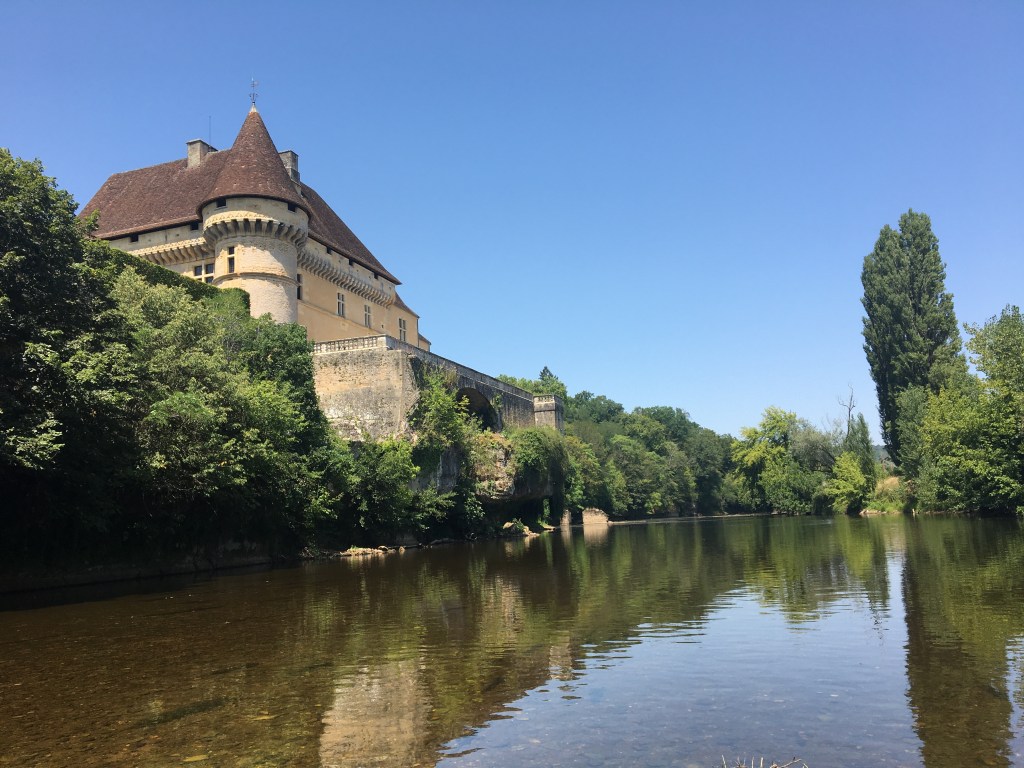 En cette fin de vacances en Périgord, nous avions décidé de fuir la canicule à bord d’un canoë. Nous laissant doucement glisser au fil de l’eau, nous avons admiré de fiers châteaux accrochés à la rive.