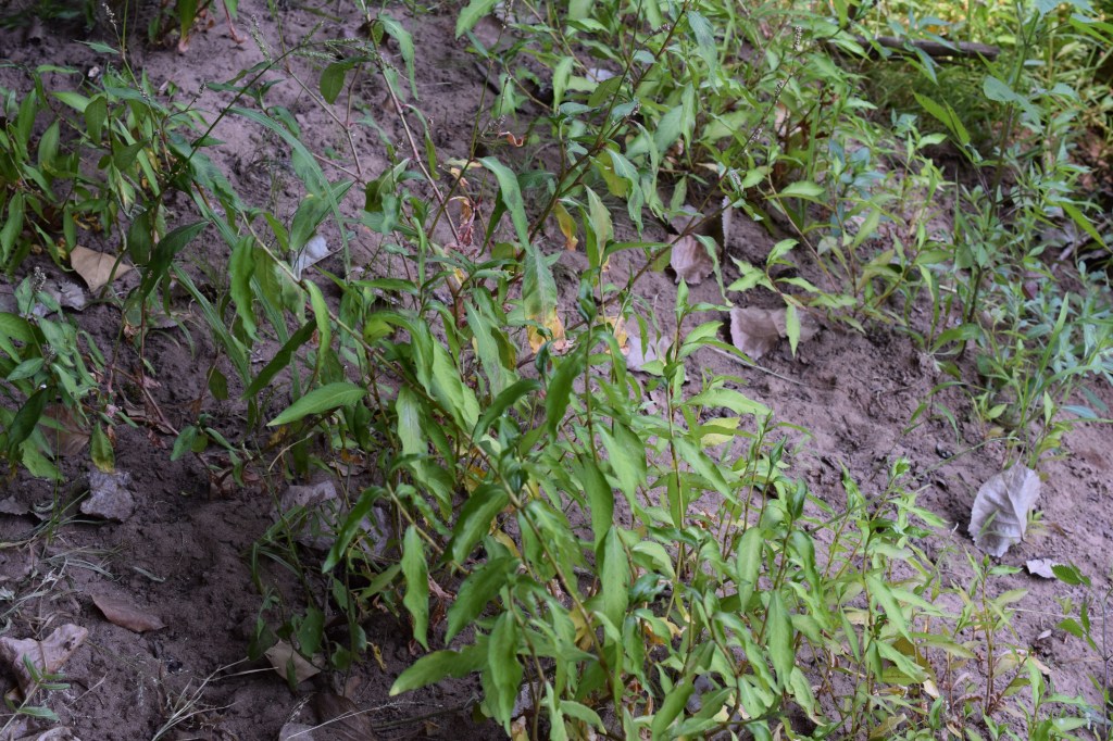 La renouée persicaire, Polygonum persicaria, Polygonaceae, est reconnaissable à la tache brune qui marque le plus souvent ses feuilles. Malgré la proximité de l’eau, celle-ci souffre de la sécheresse.