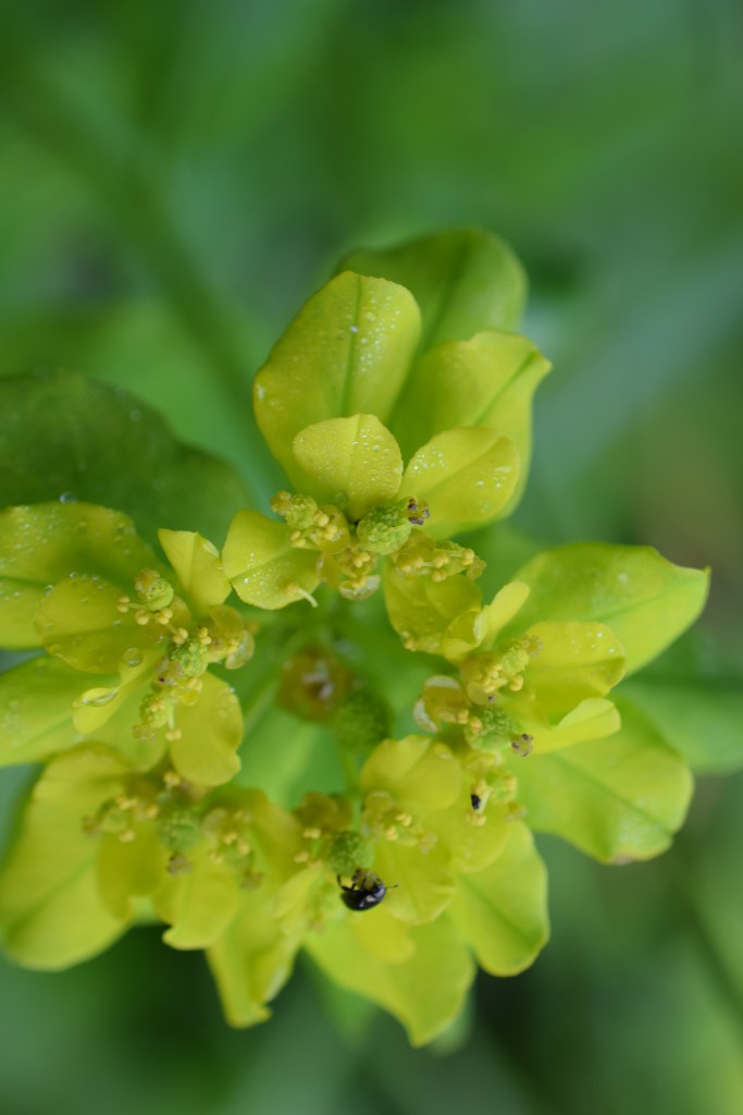 Au passage une euphorbe avec des feuilles alternes, minces, oblongues-lancéolées, et surtout une capsule couverte de tubercules cylindriques. C’est ce dernier critère qui me fait pencher pour Euphorbia stricta, sans certitude toutefois, car les spécimens ne sont pas du tout ramifiés mais présentent apparemment une seule ombelle de fleurs au sommet. En tout cas c’est sûr que c’est une euphorbe, famille des Euphorbiaceae!