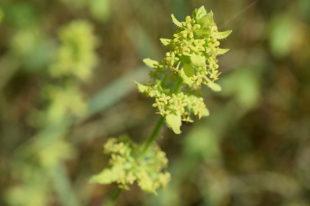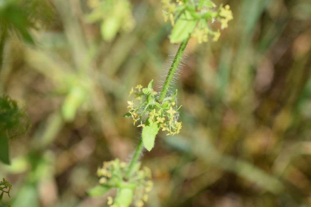Le gaillet croisette, Cruciata laevipes, est reconnaissable à ses feuilles à trois nervures, verticillées par quatre. La plante est tout entière d’un vert jaunâtre, très hérissée, avec des tiges simples. Les fleurs minuscules mais très nombreuses, jaunâtres, se confondent avec les feuilles. Famille des Rubiaceae.