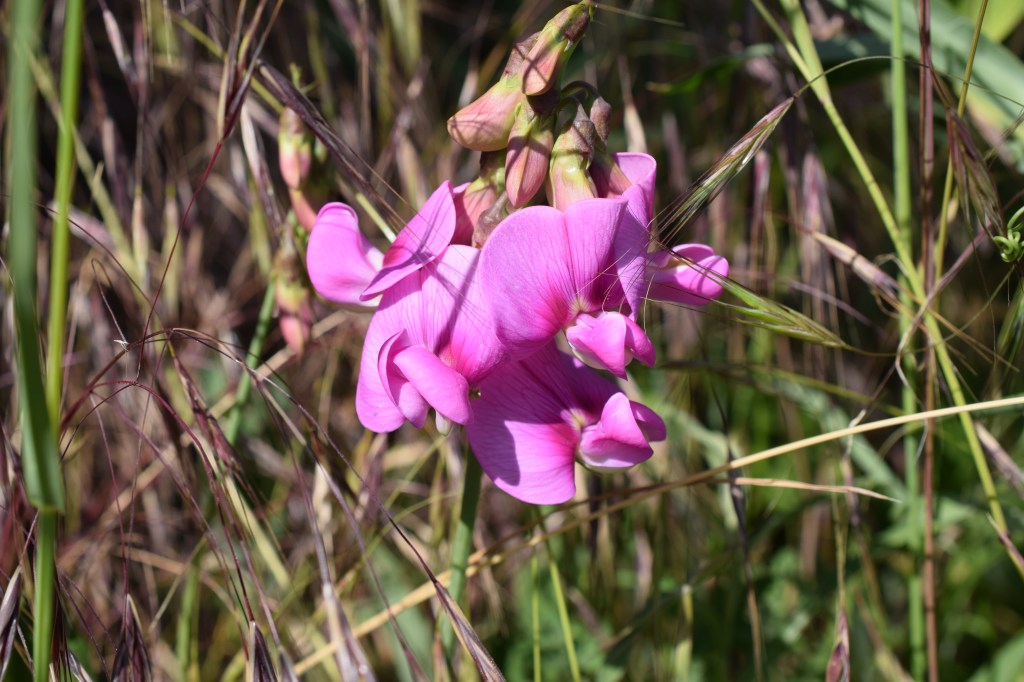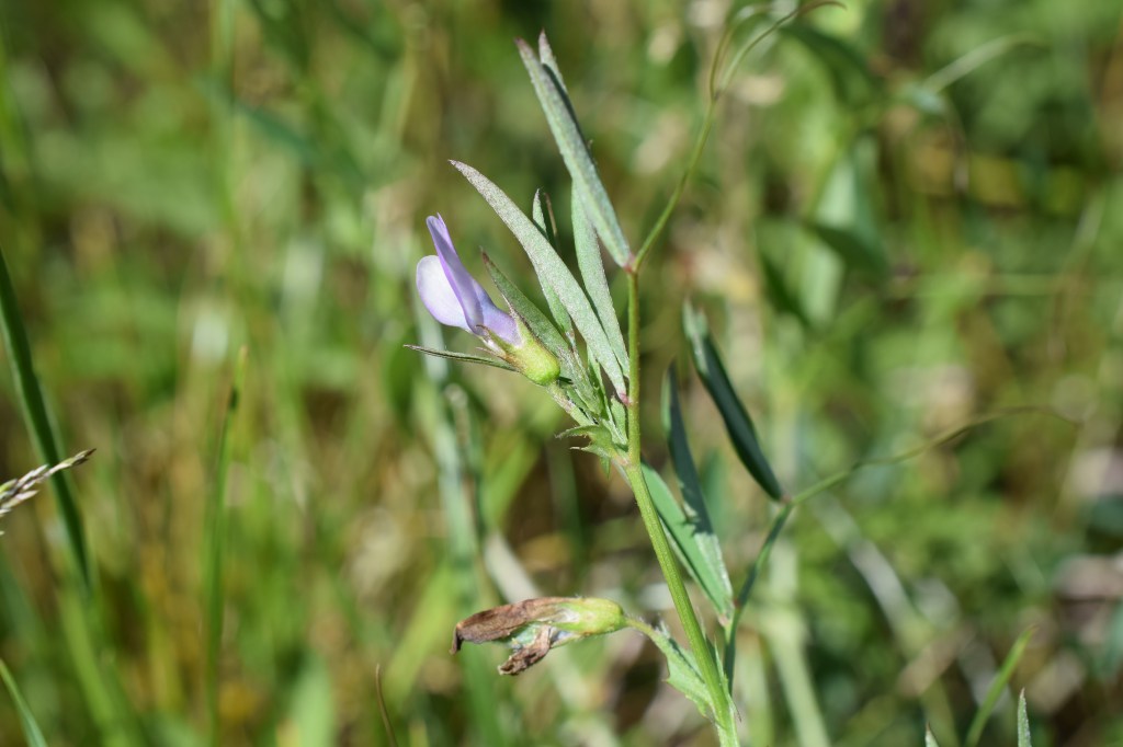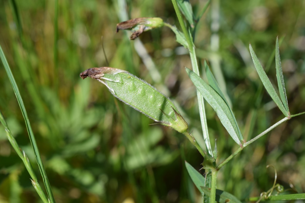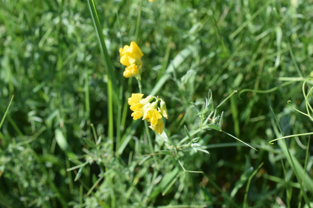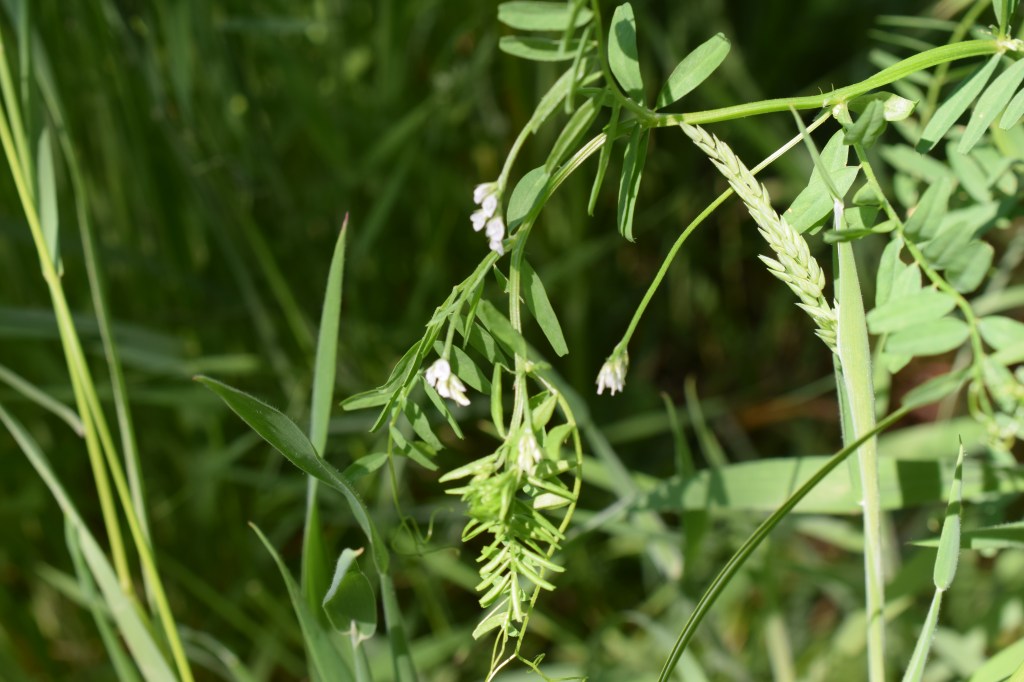 Au début de la promenade une prairie s’étend sur notre gauche. Plusieurs Fabaceae s’y rencontrent, dont en particulier plusieurs vesces (Vicia). Rétrospectivement je regrette de ne pas avoir pris plus de soin à les photographier (stipules, calices, vrilles), car l’identification sur photo s’avère très délicate. Il semble en plus que je sois allée de l’une à l’autre, comme une abeille, si bien que l’ordre chronologique de prise des photos n’aide pas non plus!