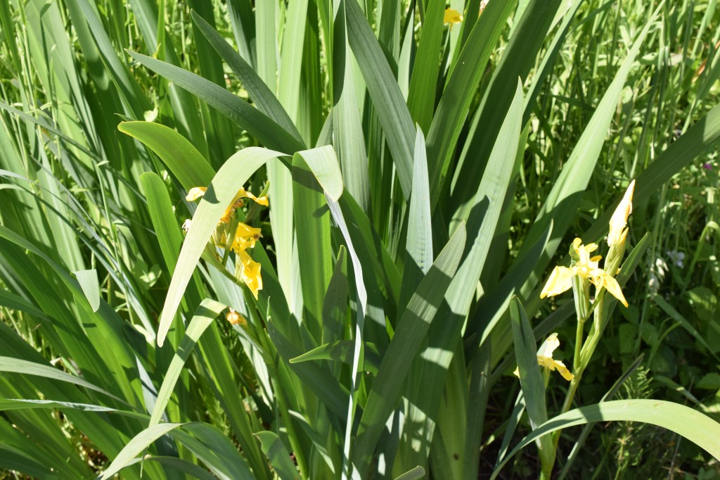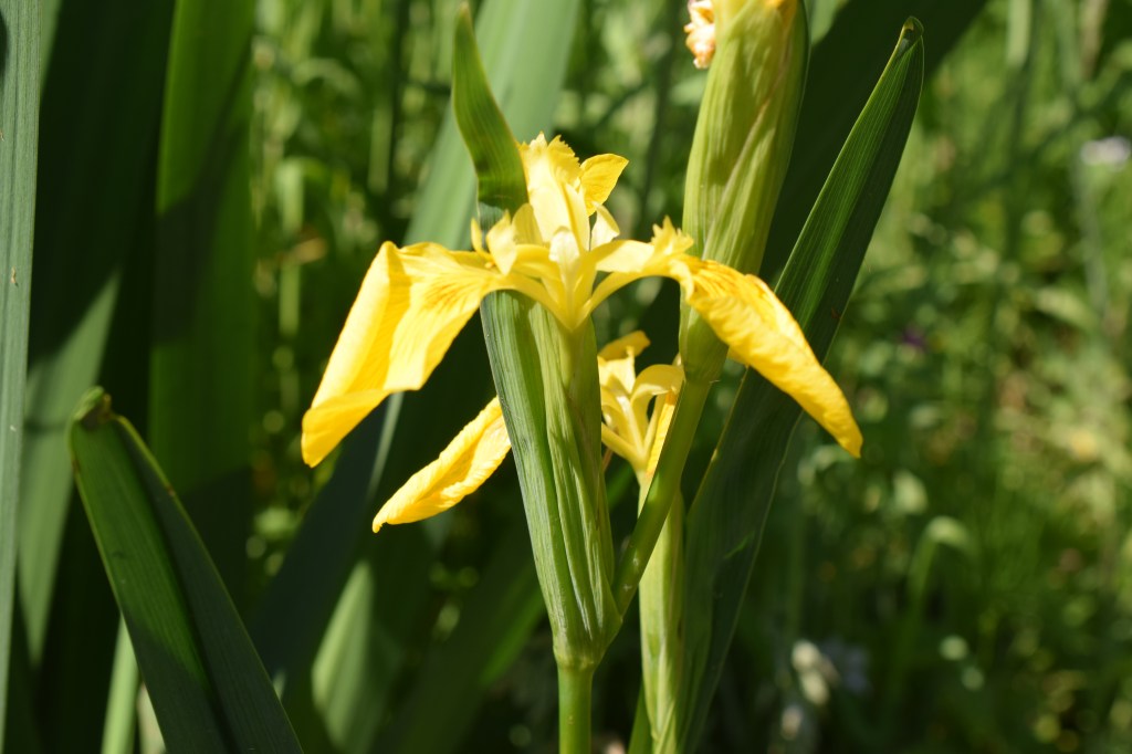 On arrive enfin au bord de l’eau, voire même les pieds dans l’eau. Ce bel iris jaune, Iris pseudacorus, est emblématique de ce milieu. Famille des Iridaceae.