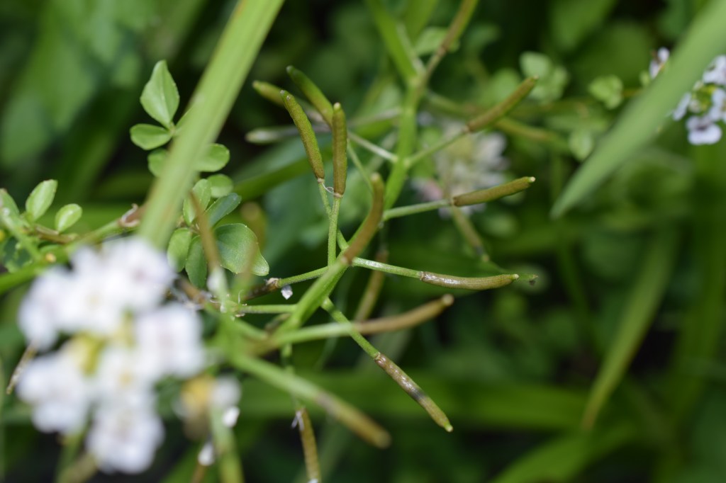 Autre plante qui ne pousse que les pieds dans l’eau, le cresson, Nasturtium officinale, famille des Brassicaceae.