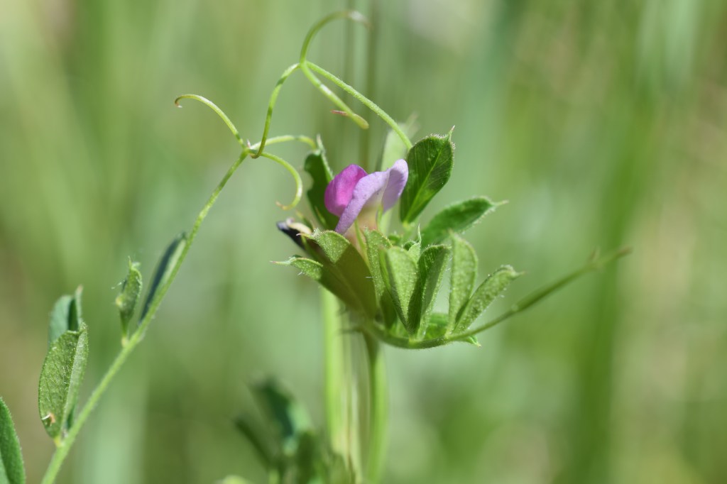 Vicia bithynica, la vesce de Bithynie, est reconnaissable à ses fleurs bicolores et à ses stipules larges et fortement dentées.