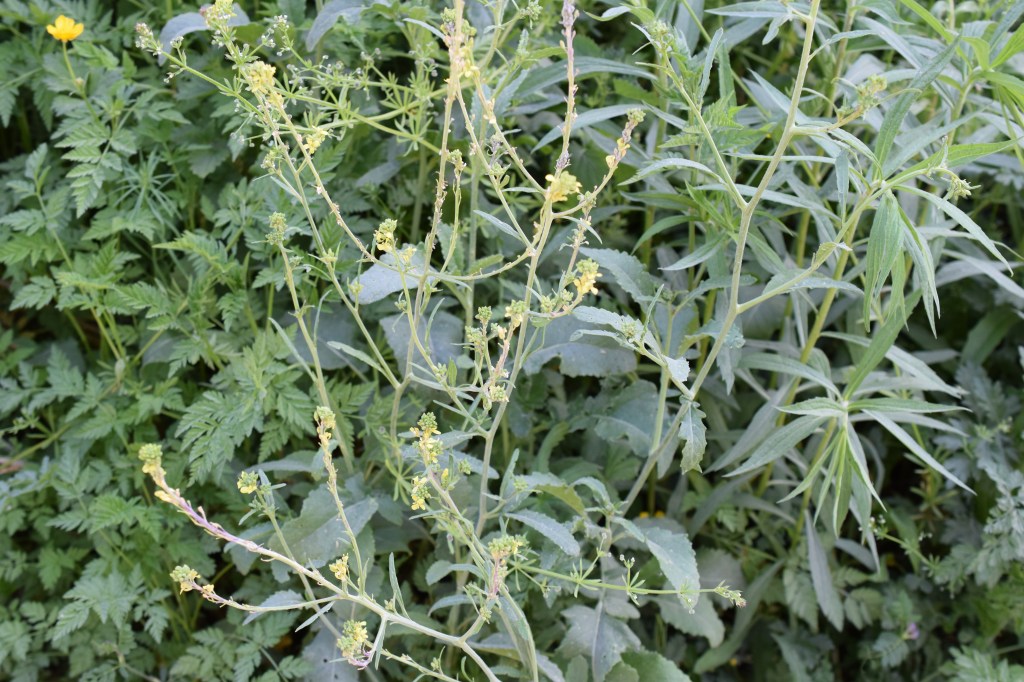 Cette Brassicaceae m’a donné du fil à retordre car les fruits ne sont pas à maturité, or sans les fruits, elles sont toutes pareilles les Brassicacae! Les feuilles sont grandes, lyrées, avec un lobe terminal très grand, le pédicelle des fleurs et surtout des fruits appliqué contre l’axe: Brassica nigra ou Sinapis nigra dans la flore de Coste, la moutarde noire. Je me demande toutefois s’il n’y a pas deux espèces différentes dans les spécimens photographiés…