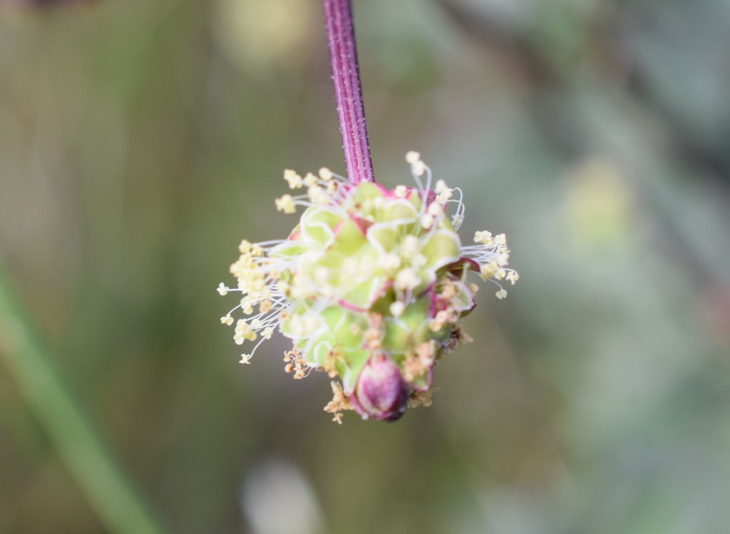 Cette plante a un joli nom, la pimprenelle, Poterium sanguisorba, Rosaceae. Les fleurs mâles et femelles sont distinctes, souvent sur la même plante. Là j’ai photographié des fleurs mâles.