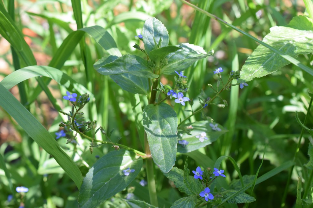 La véronique « cresson de cheval », Veronica beccabunga, Plantaginaceae, est une familière des cours d’eau. Elle se distingue des autres véroniques par son allure robuste et ses grandes feuilles.