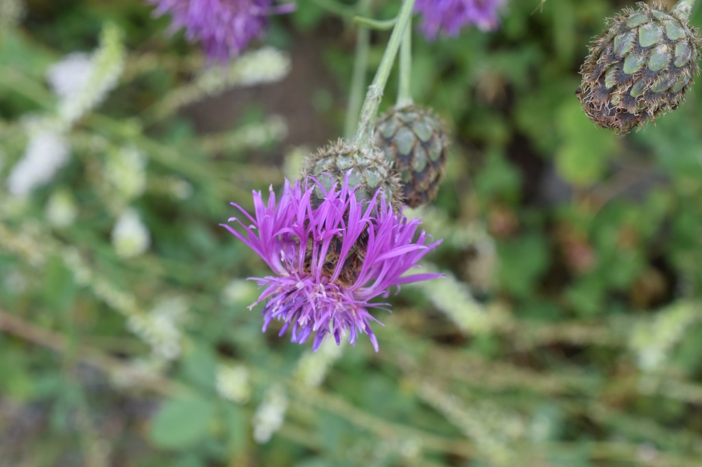 Le genre Centaurea est assez facile à reconnaître quand on a un peu l’habitude, à cause des écailles sur les bractées de l’involucre. Centaurea scabiosa subsp. scabiosa, la centaurée scabieuse, Asteraceae.