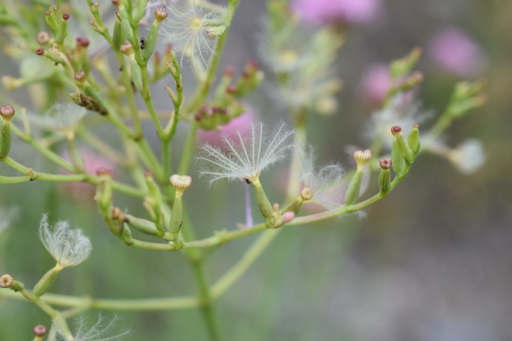 Pour revenir à notre Centranthe, outre qu’elle porte un nom plutôt rigolo, ses fleurs d’un beau rose sont très jolies à regarder de près avec leur délicat éperon.