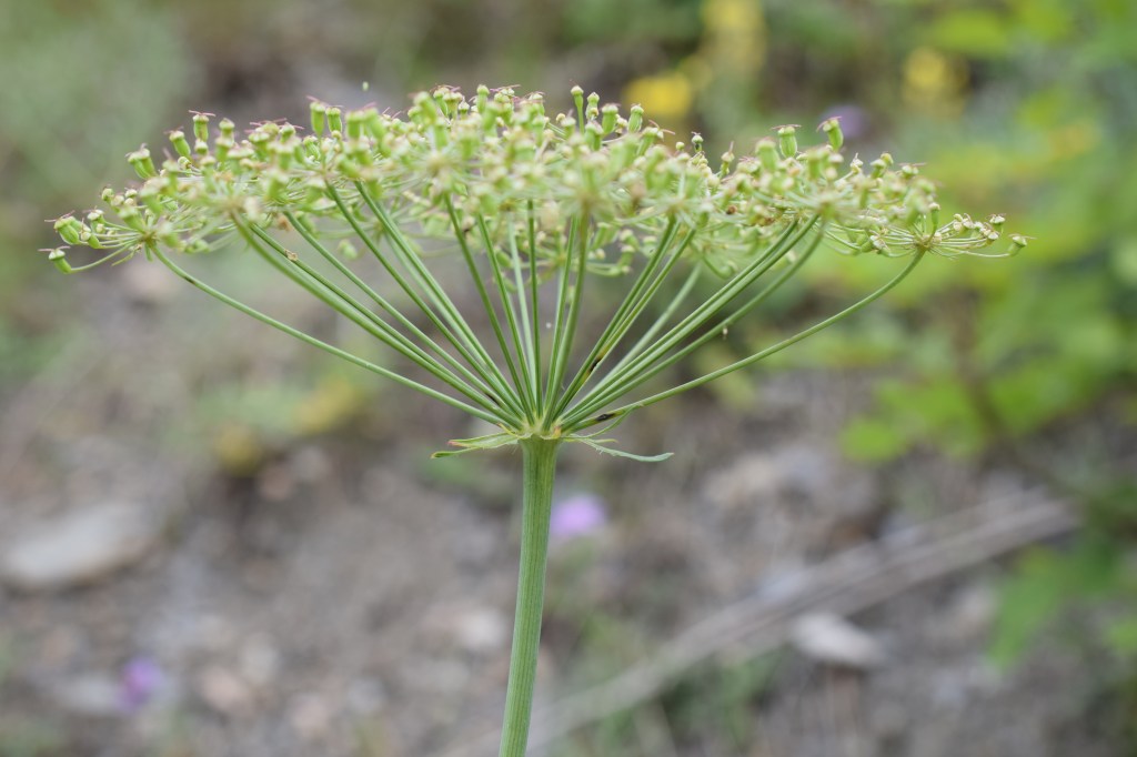 Laserpitium gallicum, laser de France, Apiaceae. Que voilà une belle plante. Les feuilles sont très grandes, avec un pourtour triangulaire, 4-5 fois pennatiséquées. Les ombelles sont grandes également, les fruits à huit ailes plus ou moins ondulées.