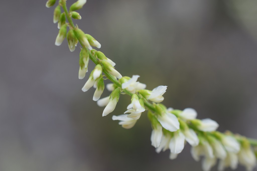 Trigonella alba, mélilot blanc, Fabaceae. Grande plante aux nombreuses petites fleurs blanches, courante sur les bords des chemins.