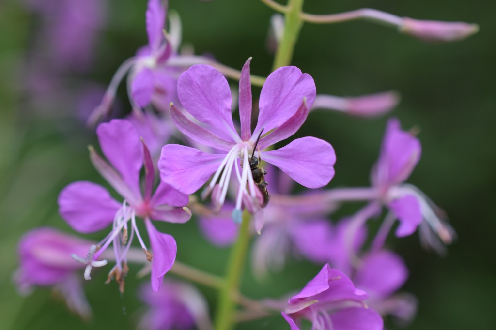 Epilobium angustifolium, l’épilobe à feuilles étroites, Onagraceae, est très commune en montagne où elle se développe en colonies spectaculaires, d’un rose intense.
