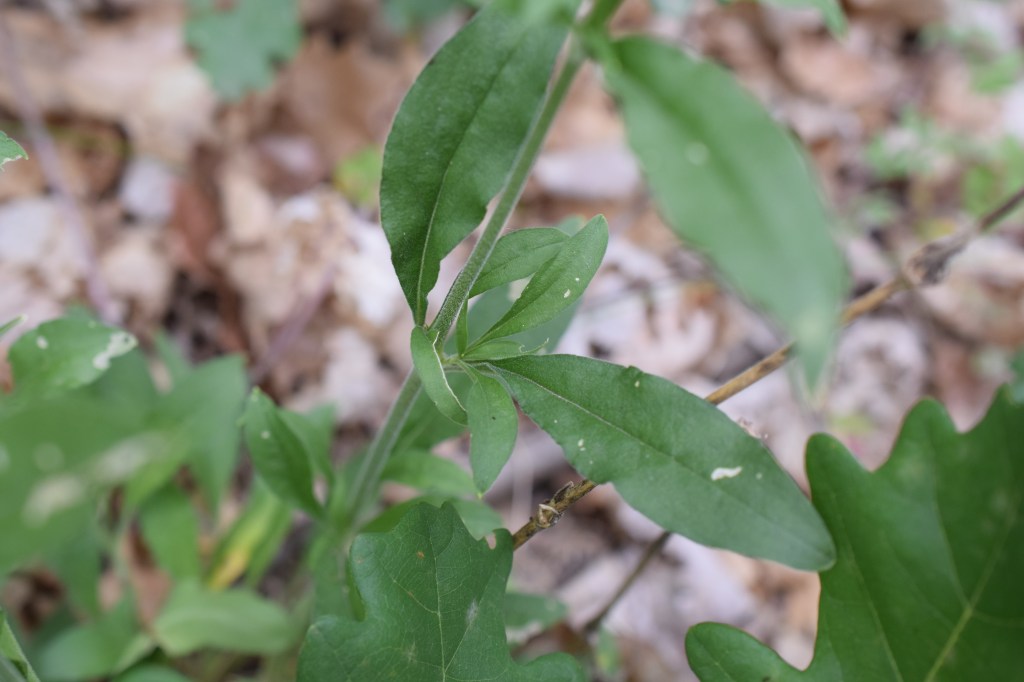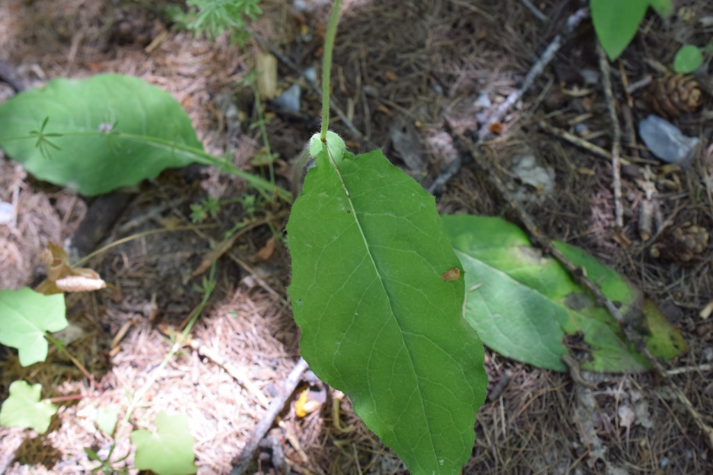 Hieracium prenanthoides, l’épervière fausse prénanthe, Asteraceae, est reconnaissable à ses feuilles embrassantes et élargies au milieu.