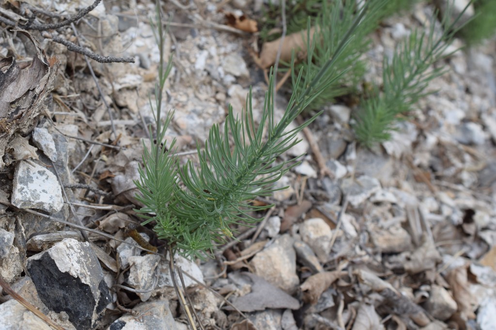 C’est là que l’on voit qu’on est à la frontière de la zone méditerranéenne, avec Lavandula angustifolia, la lavande aux innombrables vertus médicinales. A l’état sauvage, c’est en fait une plante de l’étage montagnard. Cultivée, Lavandula angustifolia correspond à la « lavande fine », qui fait la spécificité de la production française. Famille des Lamiaceae.