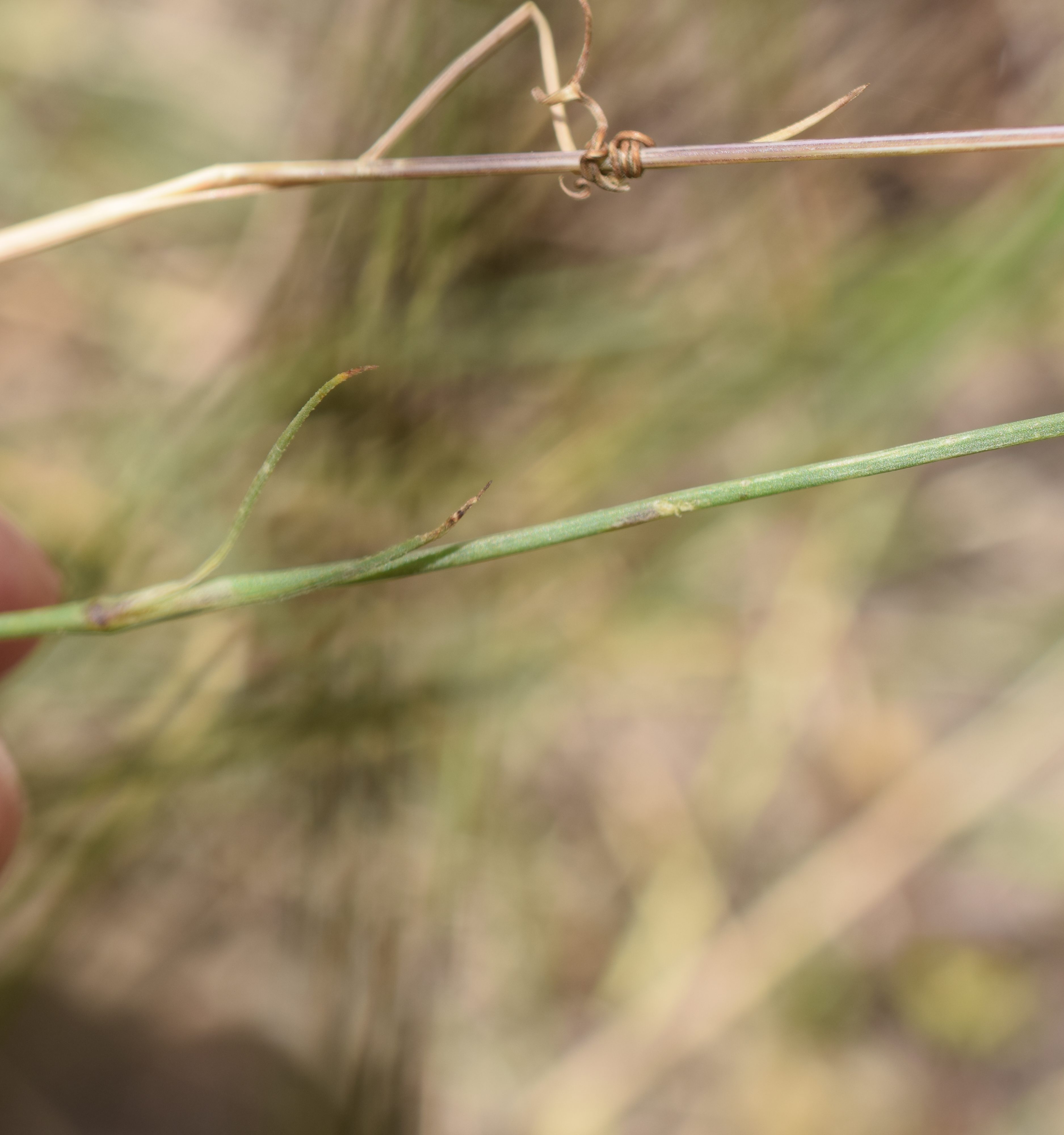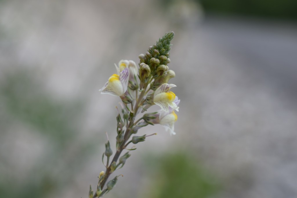 La linaire striée, Linaria repens, Plantaginaceae, passe inaperçue avec ses tiges et ses feuilles toutes fines et ses couleurs discrètes. Elle se contente des sols rocheux ou secs.