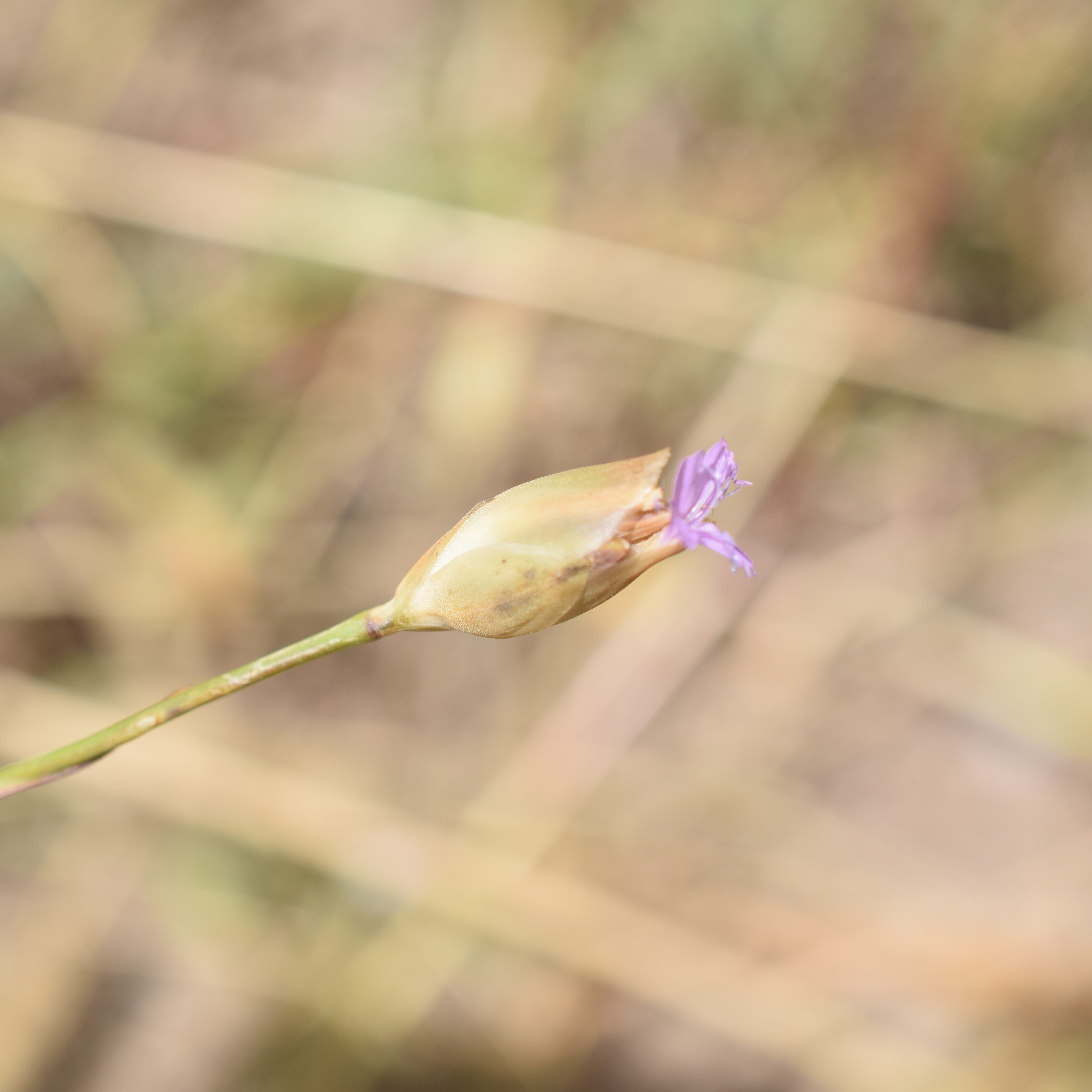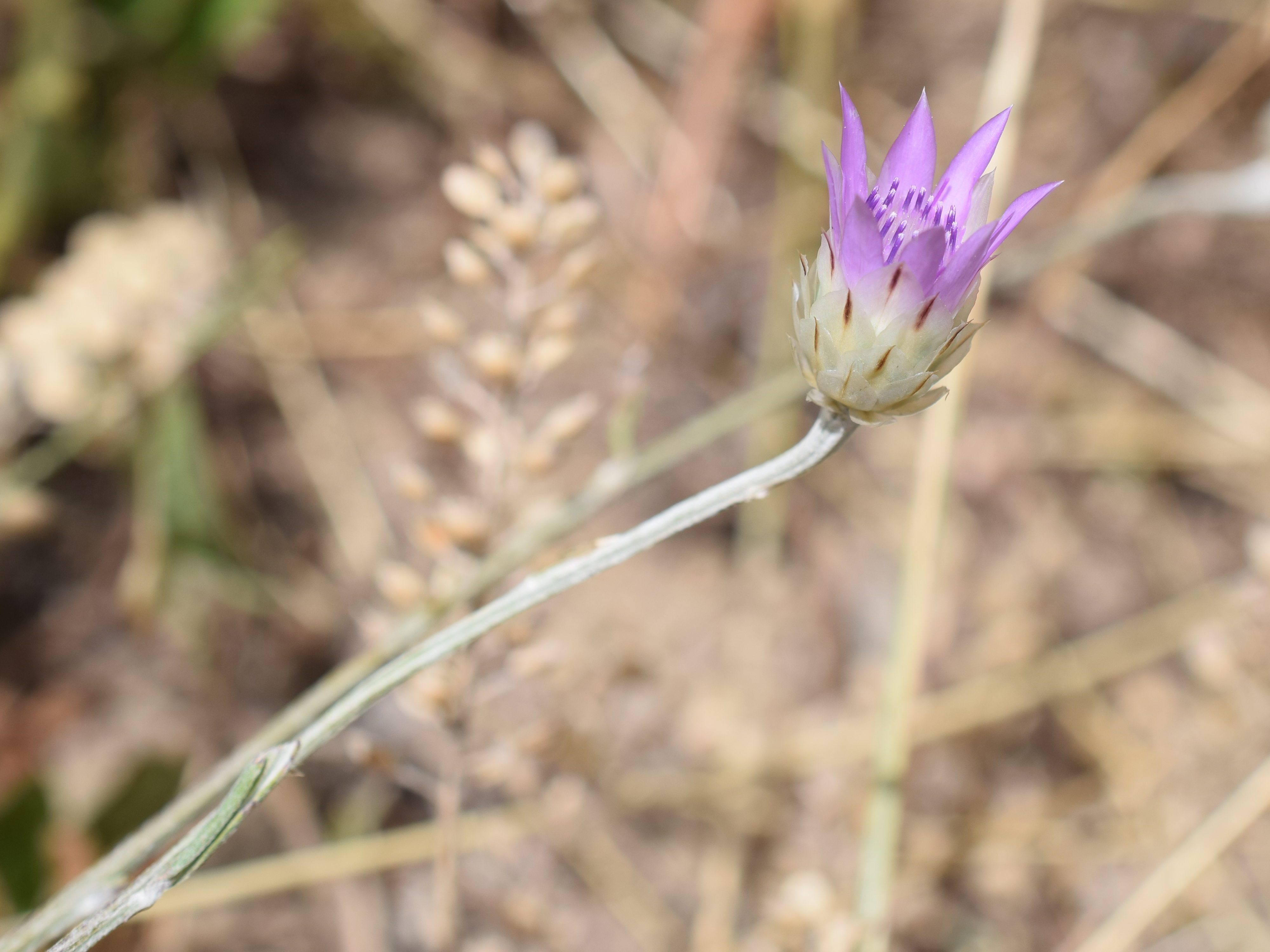 Xeranthemum inapertum, le xéranthème fermé, Asteraceae, se reconnait à ses bractées scarieuses et à son capitule qui ne s’ouvre qu’à moitié. C’est une plante des pelouses sèches, équipée pour résister au soleil.