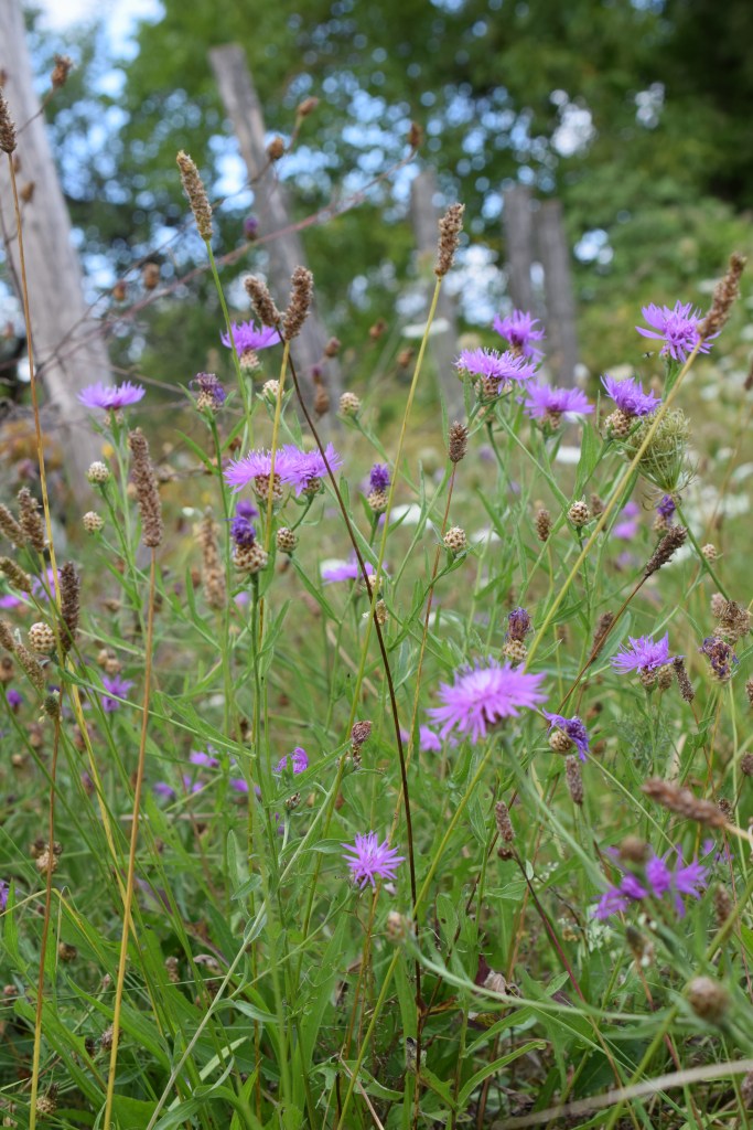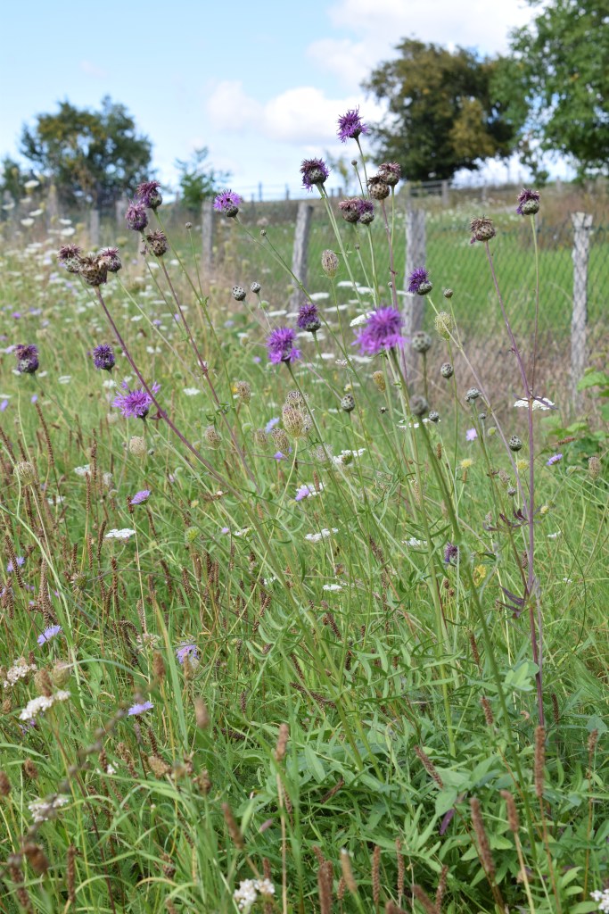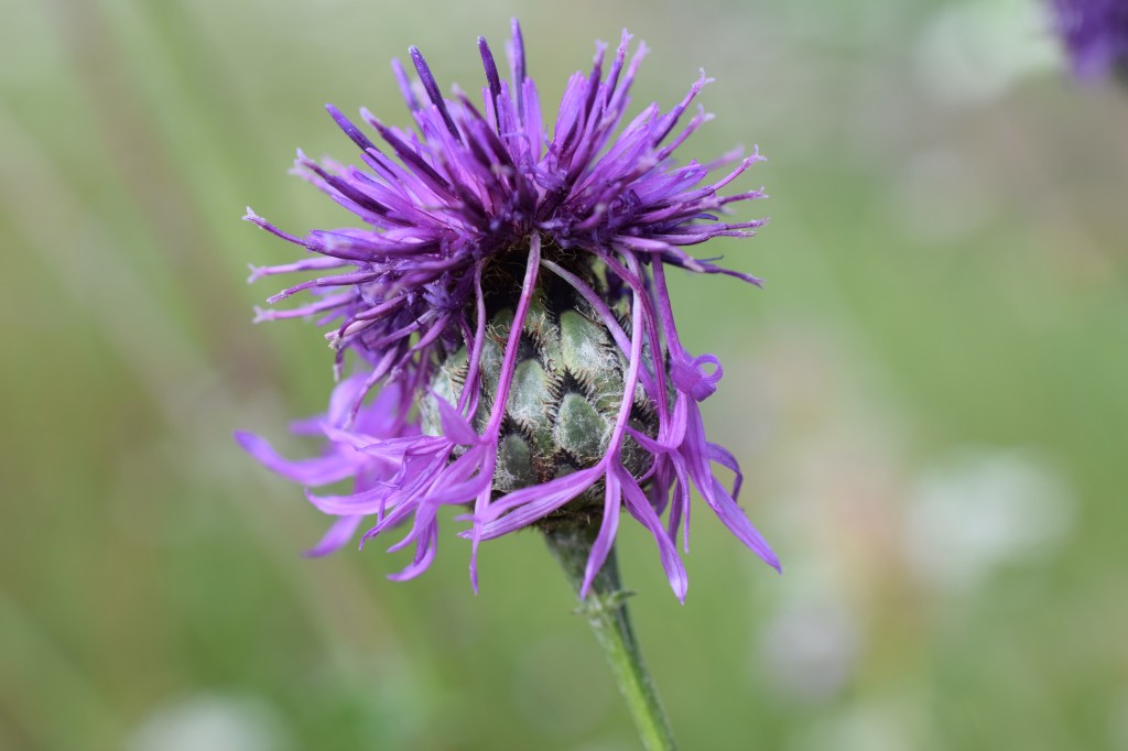 Centaurea scabiosa, la centaurée scabieuse, Asteraceae, se distingue de la précédente par les feuilles franchement pennatiséquées, et l’appendice des bractées de l’involucre plus court et noir.