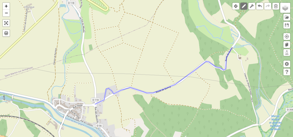 Nous sommes sur un coteau sec, ensoleillé et calcaire bordé de jardins, de prairies puis de champs cultivés. Plus loin la route traverse des bois et descend vers un vallon plus humide, mais ce ne sera pas pour cette fois.