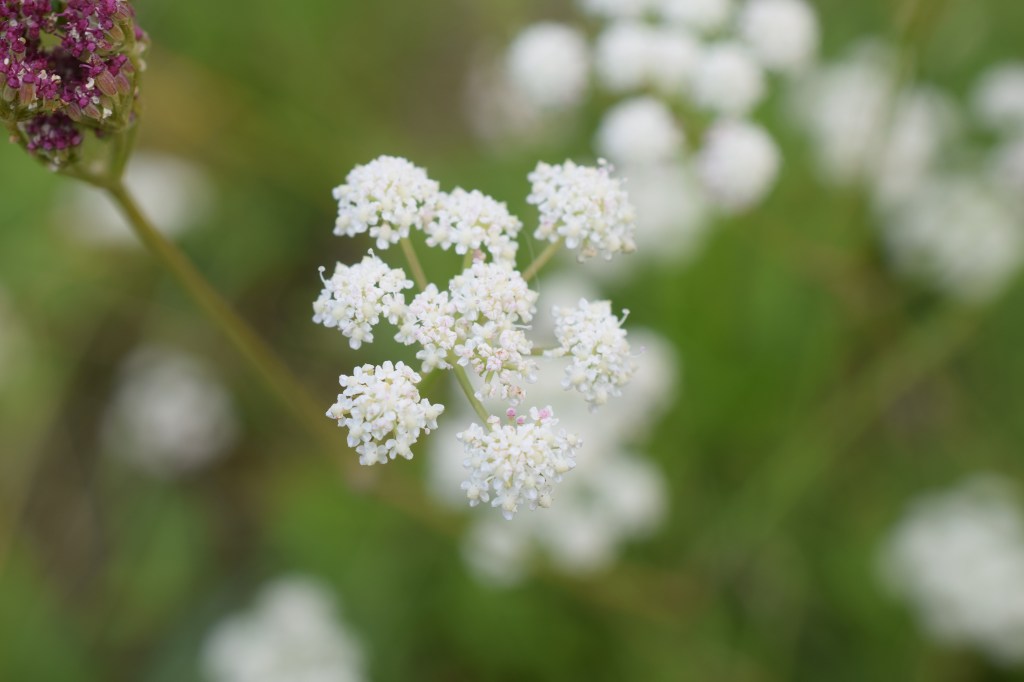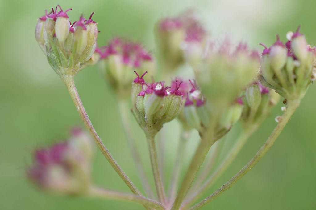Seseli montanum, le Séséli des montagnes, Apiaceae se distingue surtout par ses feuilles tripennatiséquées (divisées 3 fois) en lanières fines et ses fleurs un peu rougeâtres en particulier au niveau du stigmate.