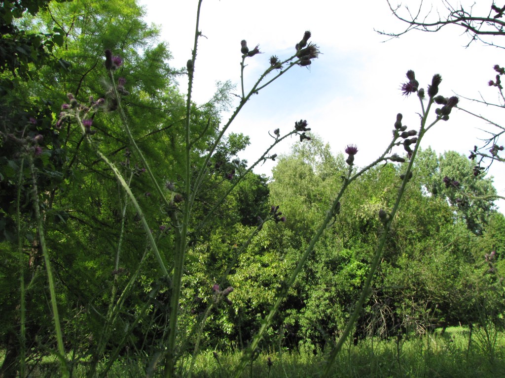 Cirsium palustre, le Cirse des marais ou bâton du diable! Peut-être nommé ainsi en raison de ses nombreux piquants, mais bon comme tous ses copains les cirses, c’est compliqué de s’en faire des bouquets.