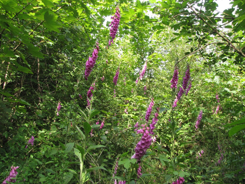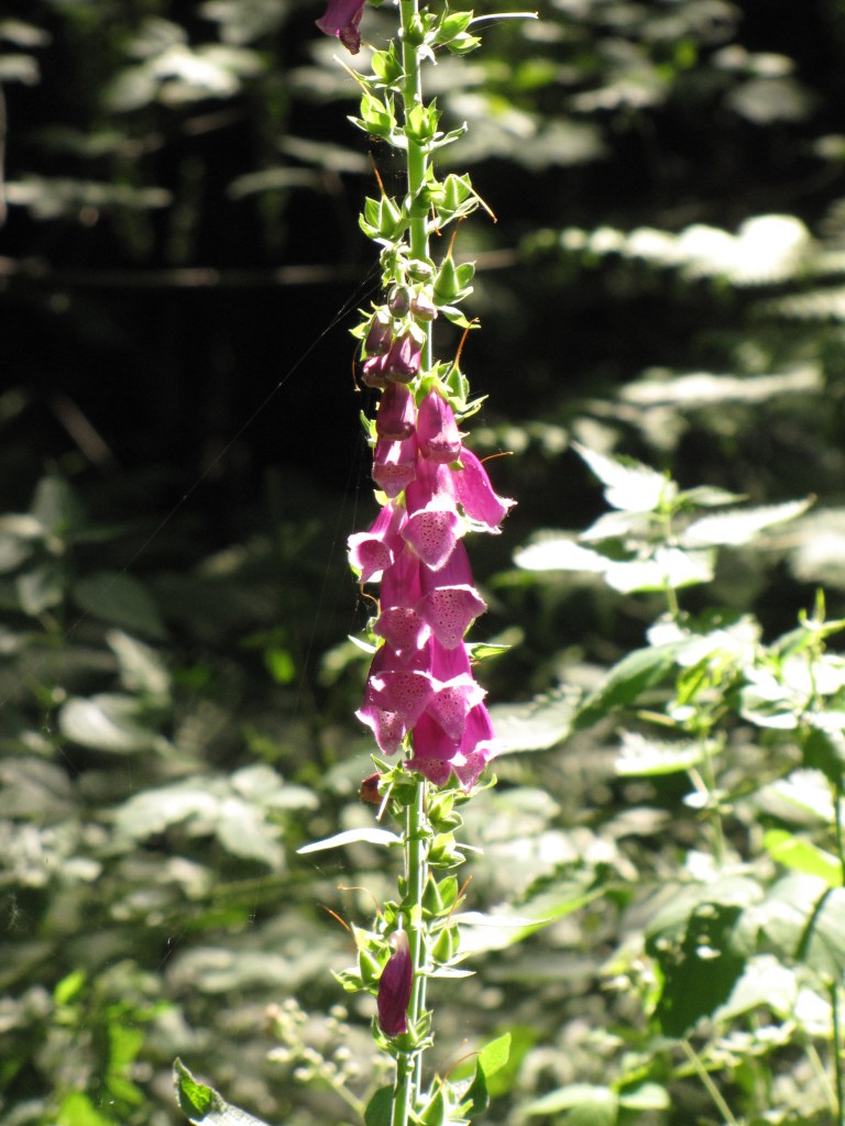 Digitalis purpurea, la grande digitale, Plantaginaceae. Elle est inoubliable. Rare dans les Alpes, mais fréquente sur une large bande diagonale qui va de la Bretagne au Massif Central.