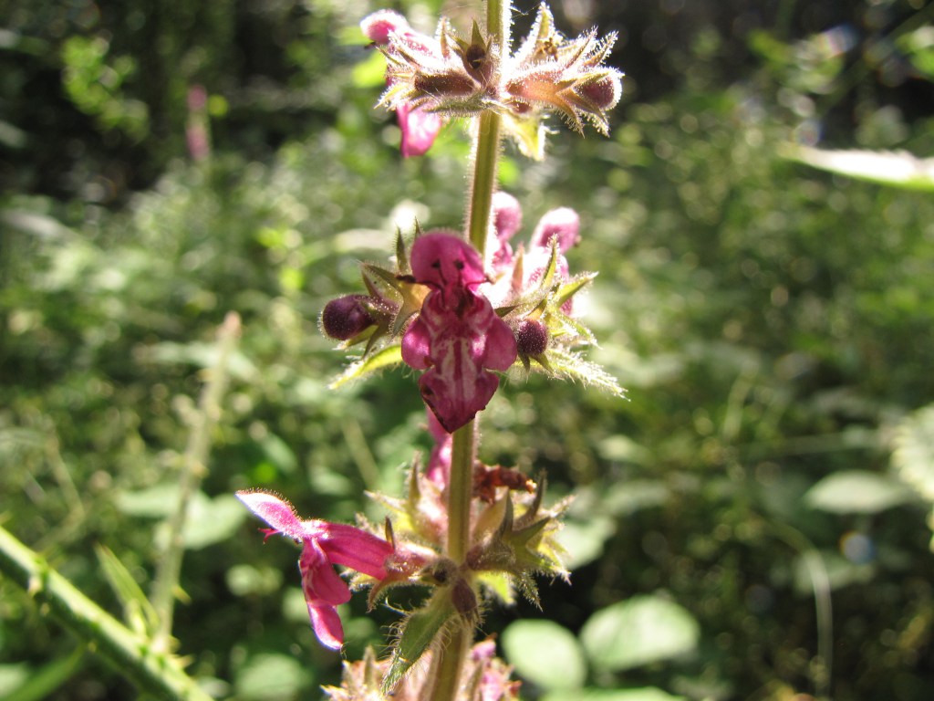 Stachys sylvatica, l’ortie puante, Lamiaceae, est une belle plante dressée, à fleurs d’un rouge sombre taché de blanc. Elle dégage une odeur désagréable au froissement.