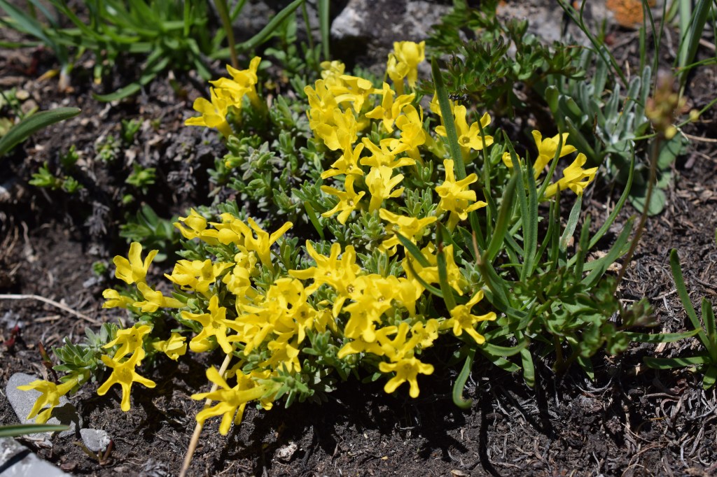 J’ai failli caler sur cette Renoncule mais finalement, avec ses feuilles étroites et les pédicelles des fleurs un peu velus, je penche pour Ranunculus kuepferi, la Renoncule de Küpfer. Ranunculaceae bien sûr.