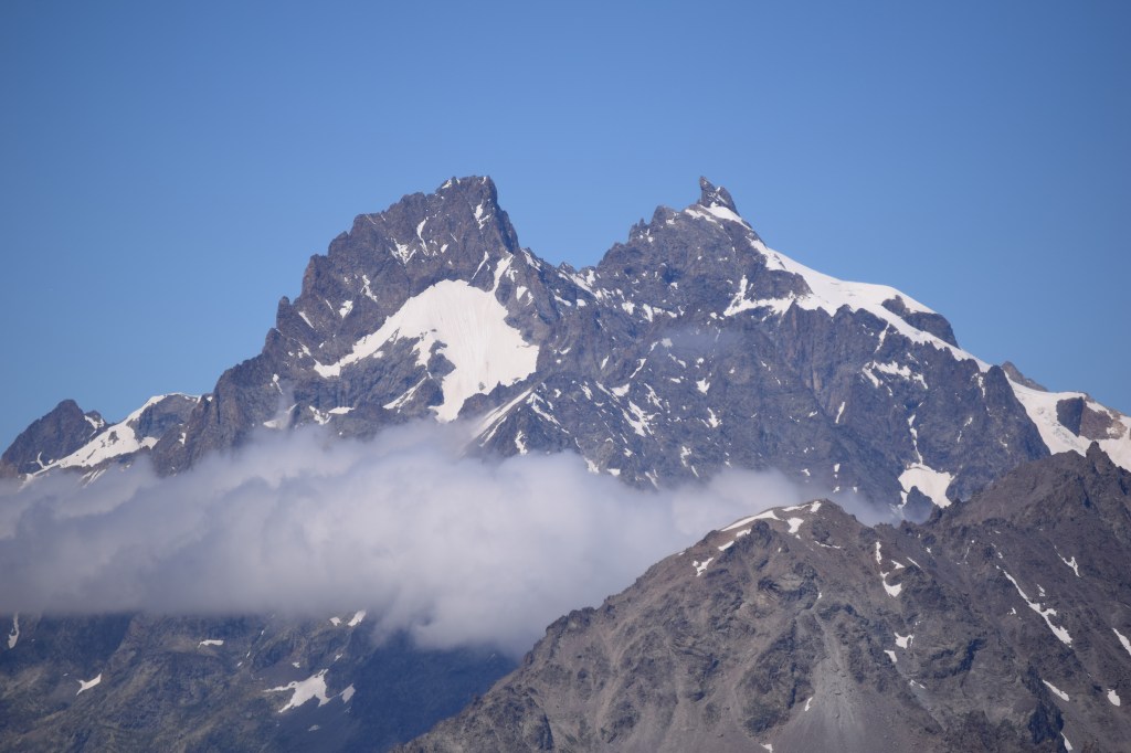Pour cette première escapade me voilà donc partie, en compagnie de trois autres nanas, à l’assaut du grand Aréa, montagne calcaire au nom étonnant, qui culmine à 2869m. Autant l’avouer, je ne suis pas allée jusqu’au sommet… Effet de l’âge, ou du Covid? Quoi qu’il en soit, avec l’aide bienvenue d’une de mes compagnes, qui s’est chargée de mon sac (et donc de la flore et de l’appareil photo), j’ai au moins pu atteindre l’étage alpin, qui comme chacun sait commence vers 2400 m dans les Alpes.