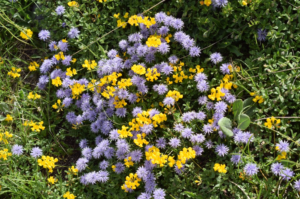 La Globulaire à feuilles en coeur apprécie décidemment de faire équipe, la voici maintenant avec une petite Fabacée jaune, vraisemblablement Hippocrepis comosa.