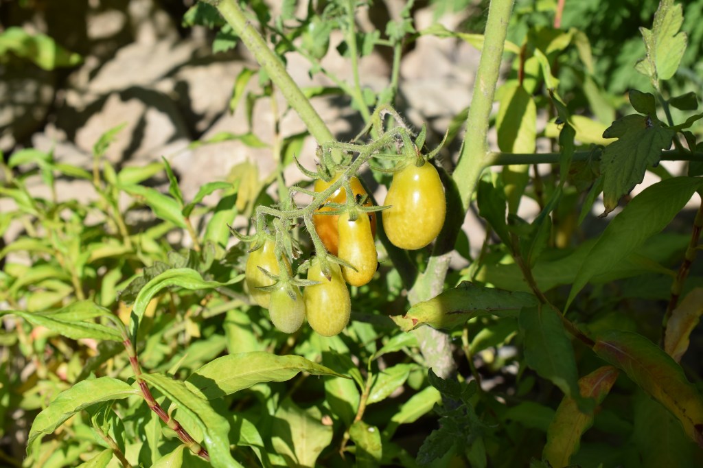 Et quelle est donc cette fleur qui ressemble beaucoup à celle de la douce-amère, mais complètement jaune, que l’on voit bien derrière la molène? Eh bien c’est un pied de … tomate, Solanum lycopersicum, Solanaceae! Arrivée dans un panier de pique nique sans doute…