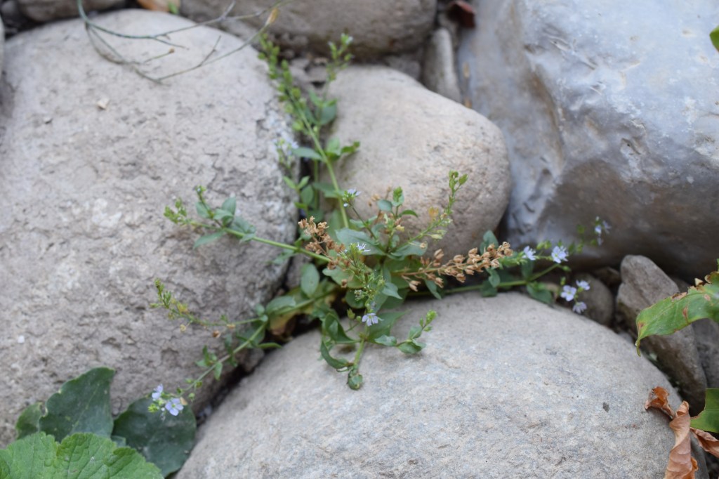 Veronica anagallis-aquatica, la véronique mouron d’eau, a des tiges plus ou moins couchées, glabres, rectangulaires et des fleurs bleu pâle ou rose. Plantaginaceae. Les photos ne sont pas très nettes malheureusement …